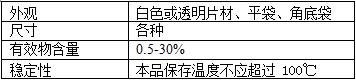 本產(chǎn)品主要適用于瓜子堅果類、冷熱加工糕點類產(chǎn)品的內包裝。使用量因包裝內容物而異,最好在廠家指導下,根據(jù)具體儲存環(huán)境科學使用。本產(chǎn)品對延緩包裝物的霉變進程有顯著效果,正確的使用可使保存期延長2-3倍。